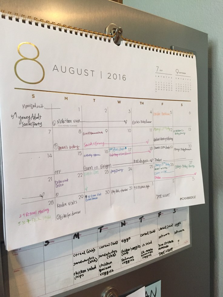 So, about planning. I have our family calendar on my fridge, an exercise calendar in the office, a meal plan for the week, and a calendar I keep on my phone so it’s accessible when I’m out. Things are often color coded and it makes me so happy when I reconcile them all once a week to make sure I’ve got everything covered.